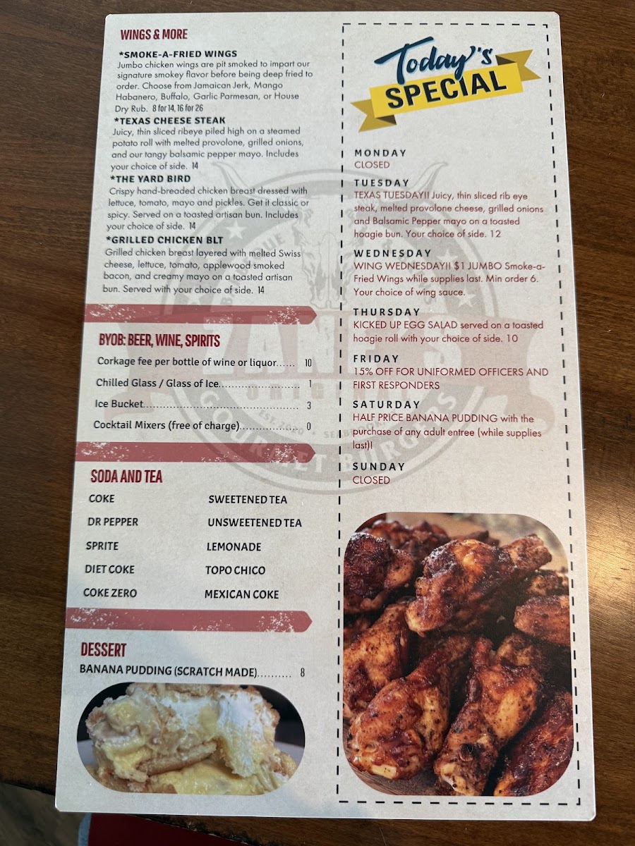 The standout, however, is their Texas Yard Bird sandwich and the expertly smoked wings, available in various flavors like Mango Habanero. With rave reviews praising the attentive service and vibrant ambiance, dining at Zane’s is an all-around delightful experience. Each visit guarantees not only a satisfying meal but also memorable moments shared over exceptional food & drinks.